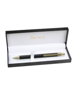 Boligrafo belius potsdam negro y dorado cuerpo fibra carbon tinta gel azul en estuche