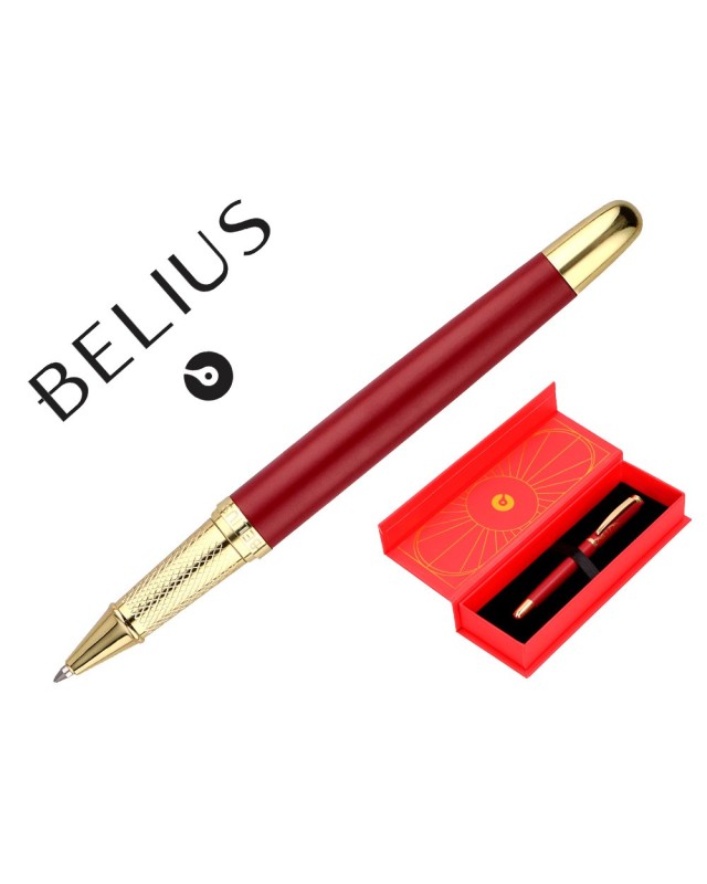 Boligrafo belius soiree aluminio color art deco granate y dorado tinta azul caja de diseño