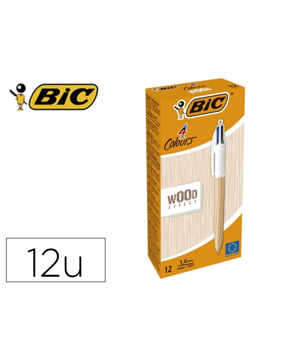Boligrafo bic cuatro colores wood caja de 12 unidades
