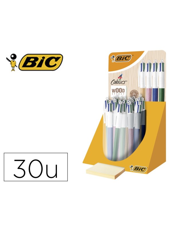 Con cuerpo cubierto con un atractivo diseño de aspecto natural, estos 12 bolígrafos BIC 4 Colours Wood Style son una versión lúdica y actual del icónico BIC 4 Colores. Las cuatro puntas medias de 1,0 mm de estos bolígrafosversátiles se adaptan perfectamente a todo tipo de usos. Los recambios de tinta de cuatro colores (azul, rojo, verde y negro) hacen que organizar y memorizar notas sea mucho más sencillo. Fabricado en Francia y diseñado p ara durar, este bolígrafo ofrece un total de 8 km de escritura.