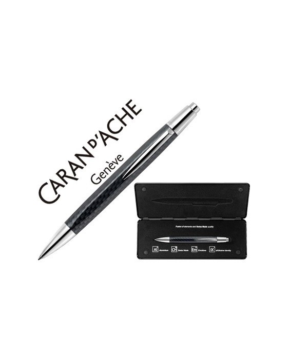 Boligrafo caran d'ache alchemix cuerpo fibra de carbono adornos cromados brillante con estuche punta