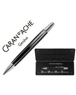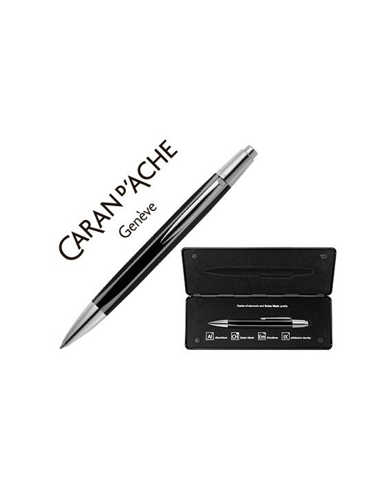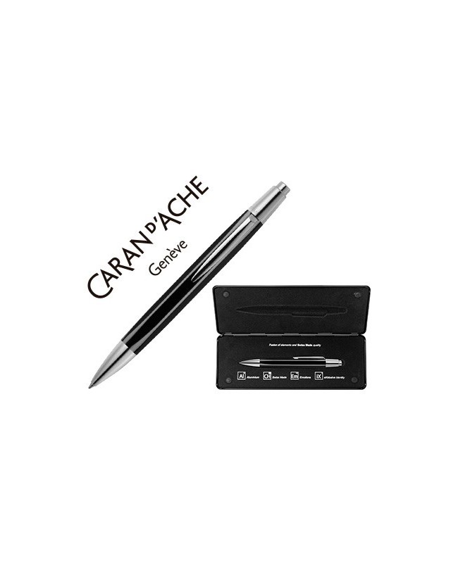 Boligrafo caran d'ache alchemix cuerpo laca negra adornos cromados brillante con estuche punta media