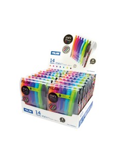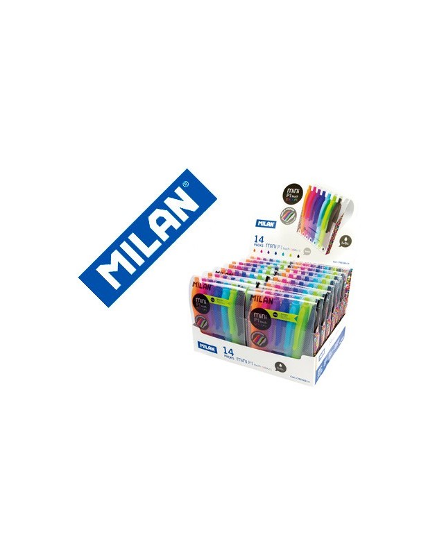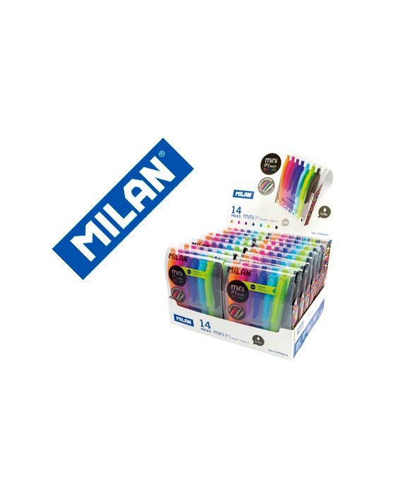 Boligrafo milan p1 retractil 1 mm touch mini estuche de 7 unidades colores surtidos expositor de 14 estuches