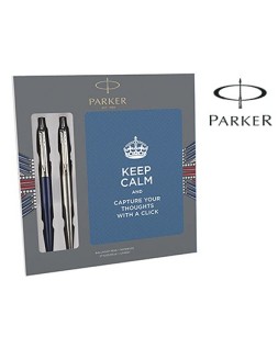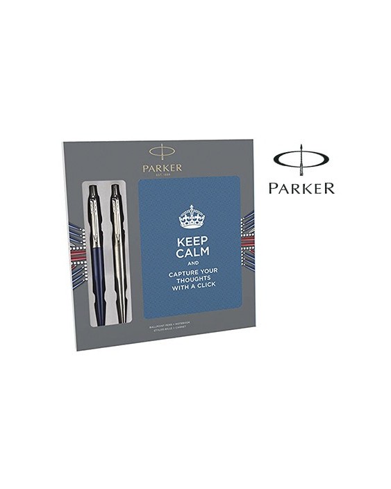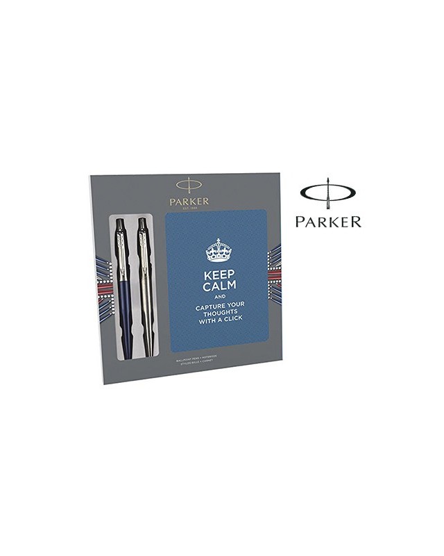 Boligrafo parker jotter acero + azul + bloc expositor de 9 sets regalo