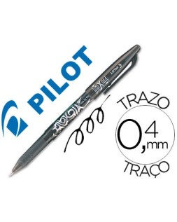 Bolígrafo con tinta gel. La tinta desaparece con un único y novedoso sistema de fricción. No mancha, no daña el papel, no deja restos. Punta de bola. Grip de caucho en la parte inferior. Cuerpo del color de la tinta. Punta de 0,7 mm. Trazo de 0,4 mm.
