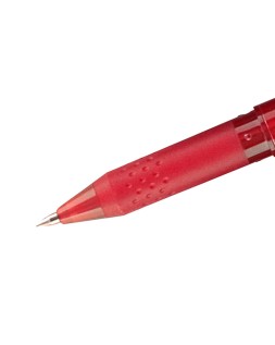 Bolígrafo con tinta gel. La tinta desaparece con un único y novedoso sistema de fricción. No mancha, no daña el papel, no deja restos. Punta de bola. Grip de caucho en la parte inferior. Cuerpo del color de la tinta. Punta de 0,7 mm. Trazo de 0,4 mm.