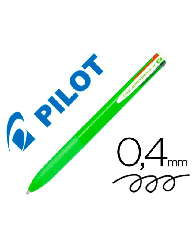 Boligrafo pilot super grip g 4 colores retractil sujecion de caucho tinta base de aceite cuerpo color verde