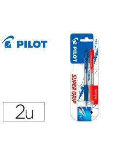 Boligrafo pilot super grip retractil sujecion de caucho tinta base de aceite en blister 1 azul + 1 rojo