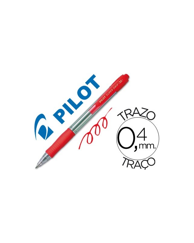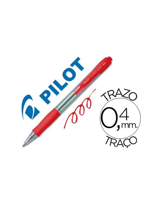 Boligrafo pilot super grip rojo retractil sujecion de caucho tinta base de aceite