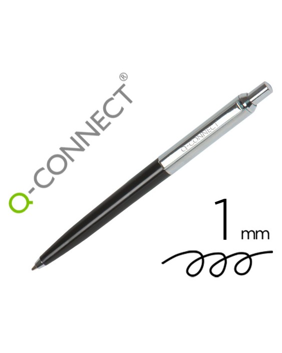 Bolígrafo retráctil metálico con un diseño clásico y elegante. Cuerpo hecho de plástico y de metal de color cromado. Recargable y compatible con los recambios tipo Parker. Escritura suave. Tinta a base de aceite. Punta de 1 mm. Trazo de 0,7 mm. Longitud de escritura: 1000 m.