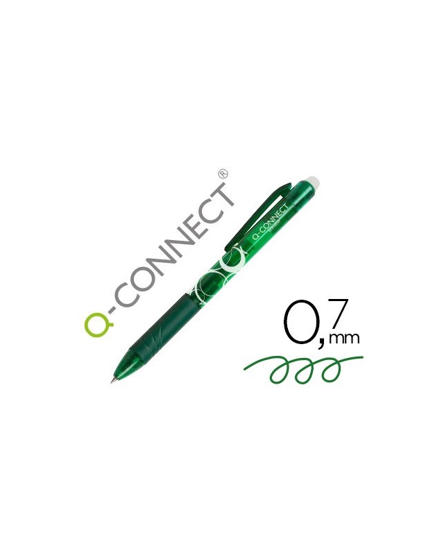 Boligrafo q-connect retractil borrable 0,7 mm color verde