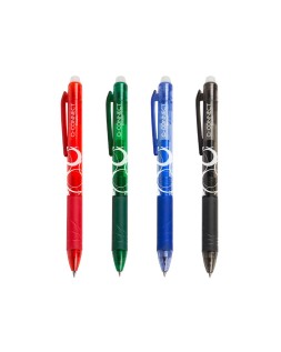 Elegante bolígrafo retráctil con tinta de gel que permite borrar y reescribir sin manchar o estropear los documentos. Borrando con la parte posterior especialmente diseñada, borra la tinta y reescribe inmediatamente. Cuerpo de color de la tinta. Punta de 1 mm. Trazo de 0,7mm.