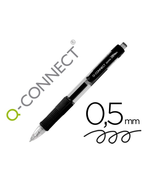 Boligrafo q-connect sigma retractil con sujecion de caucho tinta gel 0,5 mm color negro