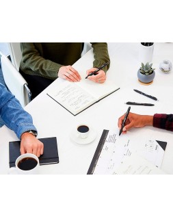 Bolígrafo retráctil de uso simple y práctico. Empuñadura cómoda y acabado mate, con diseño moderno y profesional. Tinta gel, sin borrones. Color negro. Punta media de 0,7mm. Con tecnología antifugas. Diseño profesional para oficina, colegio o universidad.