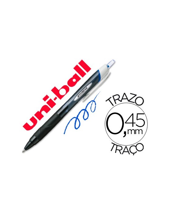 La versión Sport del roller Uni Jet Stream. Retráctil, de moderno diseño y juvenil. Tinta híbrida. Al igual que el resto de la gama Uni Jet Stream, es el roller más rápido del mundo, con secado instantáneo y suavidad de escritura extrema. Diámetro de la bola: 1 mm. Trazo de 0,45 mm.