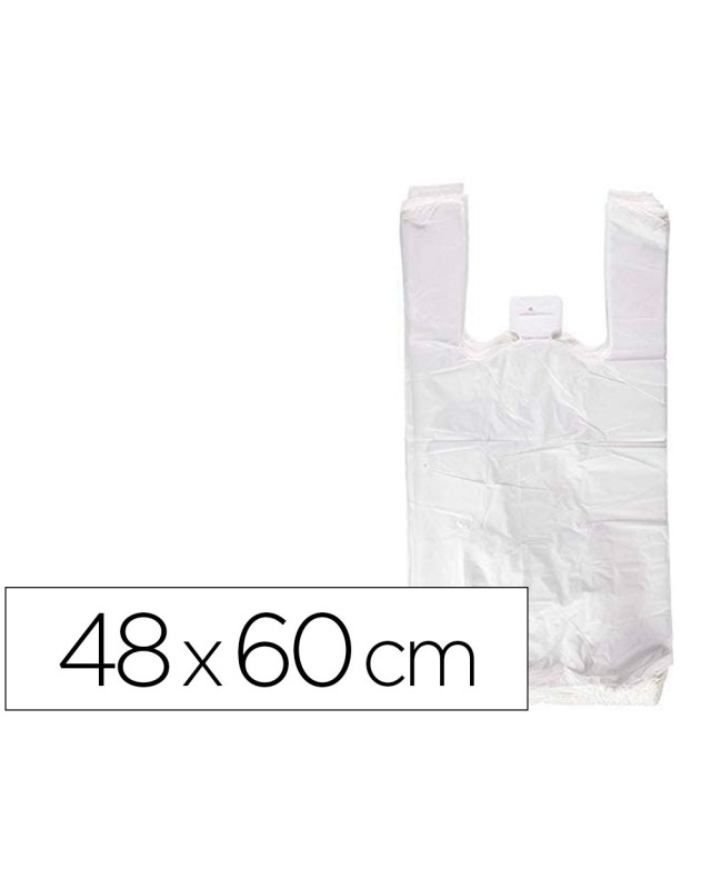 Bolsa camiseta reciclada 70% blanca 50 mc 48x60 cm apta legislacion de bolsas 2021
