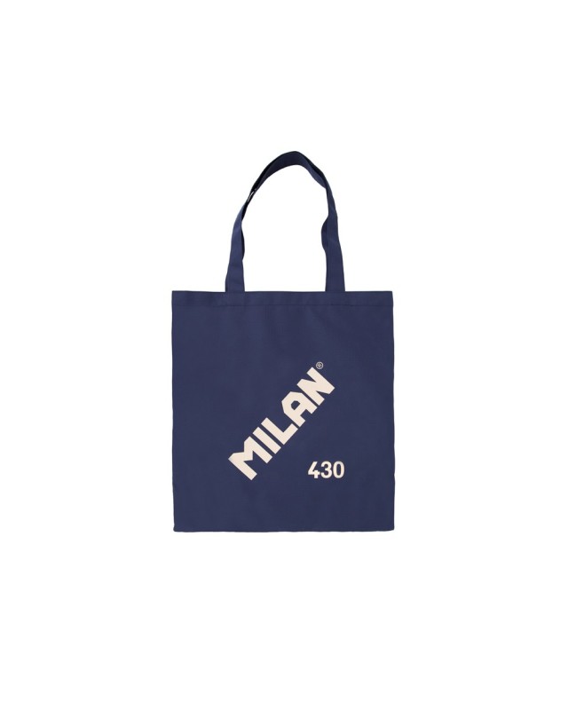 Bolsa de tela Tote Bag serie 1918. Color azul marino. Inspirada en los colores y diseño originales de las gomas de borrar Milan, fabricadas en España desde 1918. Ideal para la compra, como bolso o para llevar lo necesariopara el día a día. Tejido ripstop: ligero y resistente a la rotura y rasg aduras. Utiliza una técnica especial que teje hilos gruesos de refuerzo a intervalos regulares en un patrón entrecruzado. Composición: polyester. Medidas: 0,5 x 38 x 41 cm. Largo asa: 27 cm. Capacidad: 12,6 litros.