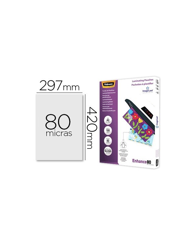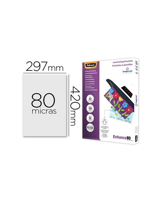 Bolsa de plastificar fellowes brillo din a3 80 mc pack 100 unidades