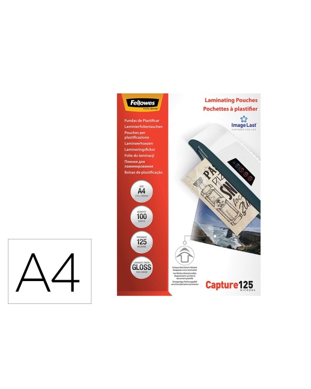 Fundas de plastificar calidad premium. Flechas grabadas que indican la dirección de entrada de la funda y que desaparecen cuando se ha plastificado.Ideales para plastificar notas informativas, menús, fotos y documentos utilizados habitualmente. Compatibles con todas las plastificadoras del mercado. Formato A4. Grosor 125 micras.