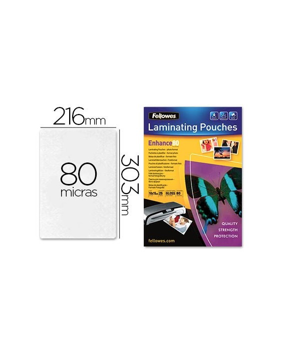 Fundas de plastificar. Calidad en la plastificación de los documentos. Ideales para plastificar notas informativas, menús, fotos y documentos utilizados habitualmente. Compatibles con todas las plastificadoras del mercado. Acabado brillo. 80 micras. El pack de 25 unidades.