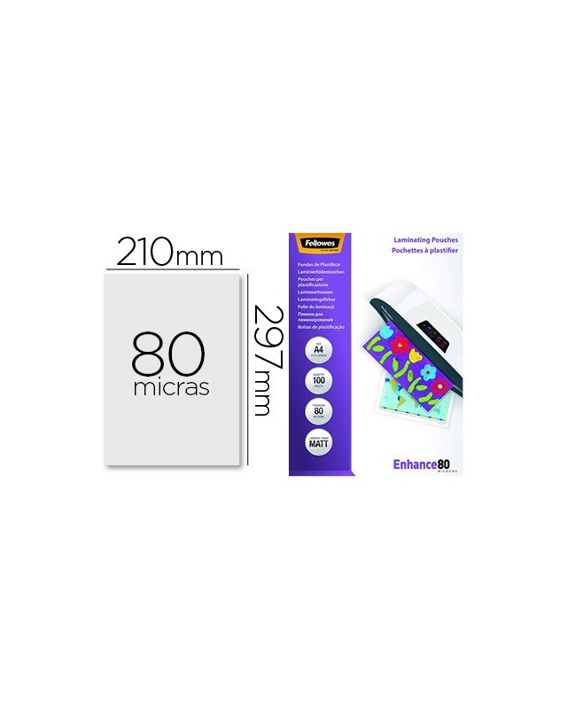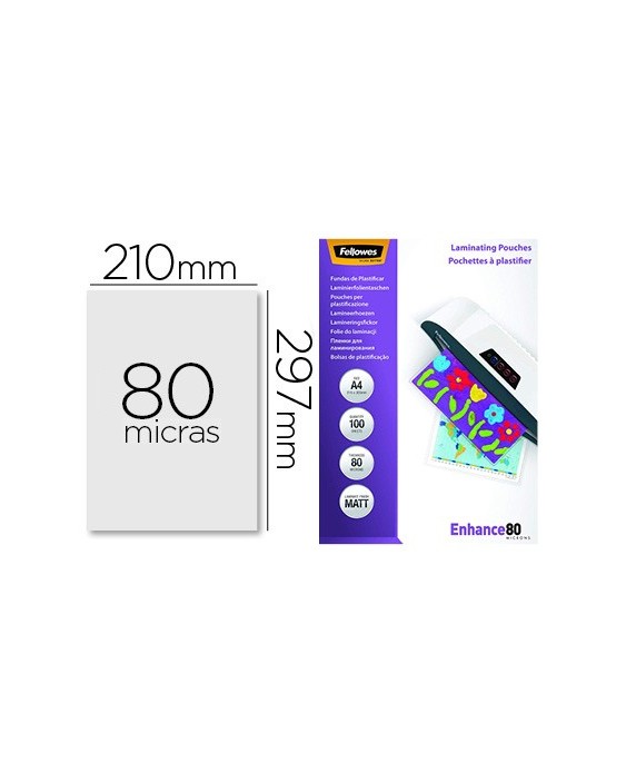 Bolsa de plastificar fellowes mate din a4 80 mc pack 100 unidades