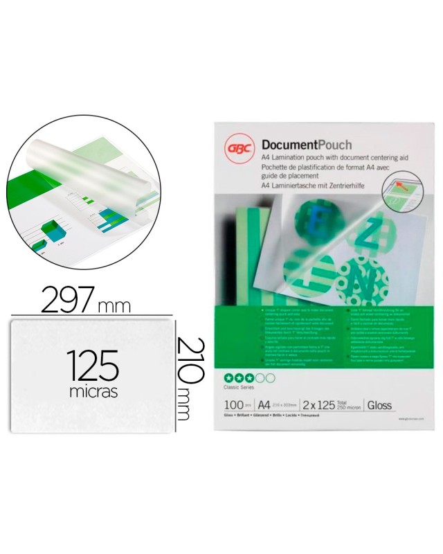 Bolsa de plastificar gbc din a4 125 mc acabado brillo caja de 100 unidades