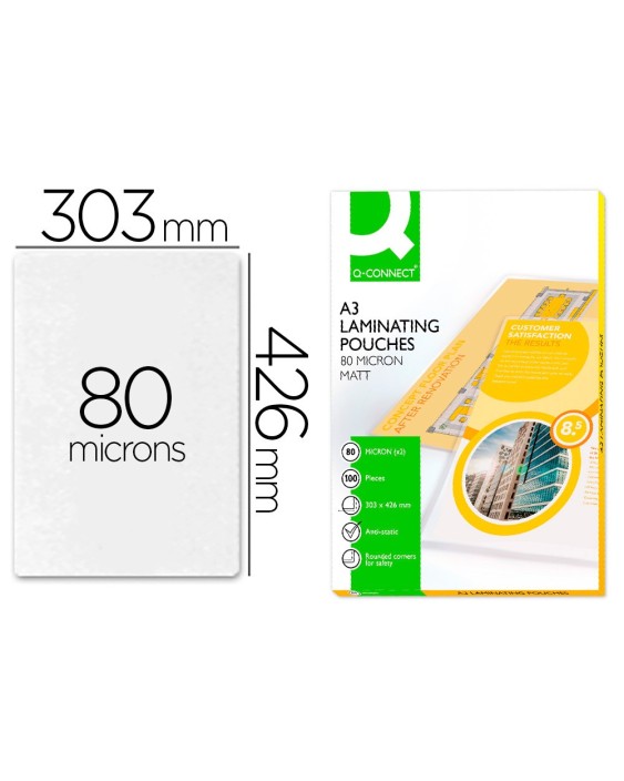 Bolsa de plastificar q-connect 303 x 426 mm 80 mc din a3 mate caja de 100 unidades