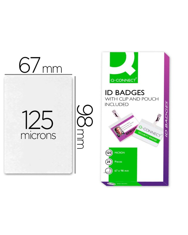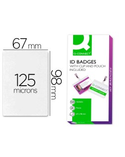 Bolsa de plastificar q-connect 67x98 mm 125 mc con clip para tarjetas de visita caja de 25 unidades