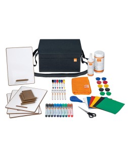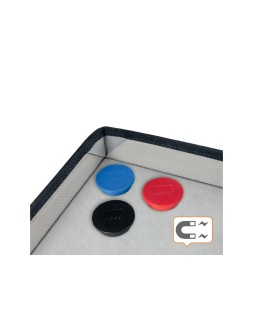 Esta bolsa kit de accesorios portátil para pizarra, ofrece la máxima flexibilidad, lo que permite celebrar reuniones de colaboración y sesiones de lluvia de ideas donde y cuando lo necesites. Con tapa magnética para guardar cómodamente los imanes y gomas elásticas para acceder fácilmente a los rotuladores de pizarra. Esta elegante bolsa de tela es ligera y contiene todo lo esencial, garantizando un trabajo en equipo productivo en la oficinao fuera de ella. Incluye: 10 rotuladores multicolores con punta de cincel para pizarra, 10 imanes surtidos de 38 mm para pizarra, cuadrados magnéti