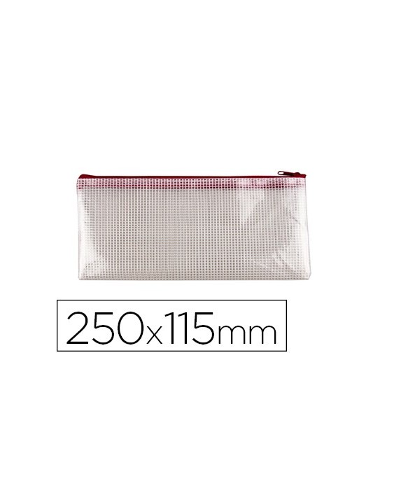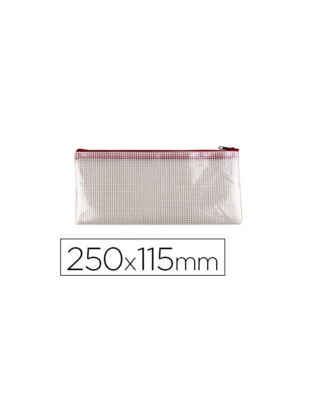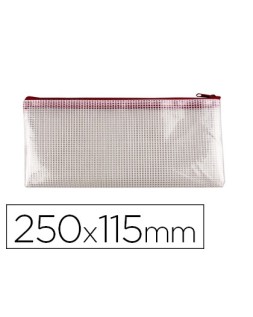 Bolsa multiusos q-connect malla cheque 250x115 mm apertura superior con cremallera rojo