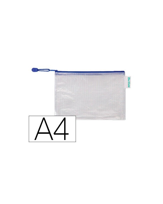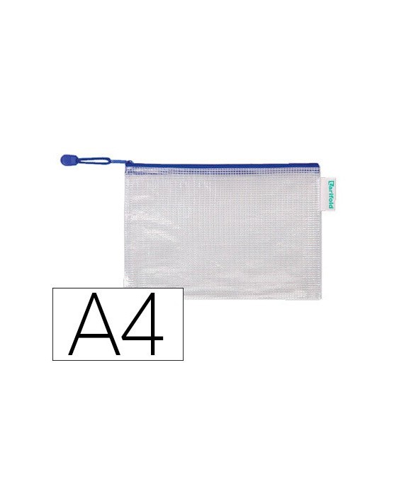 Bolsa multiusos impermeable fabricada en PVC, ideal para guardar pequeños objetos. Ultrarresistente y flexible. Con apertura superior y cierre cremallera. Incluye portabolígrafos y correa con empuñadura para una apertura fácil y rápida. Color transparente y cremallera en color azul.