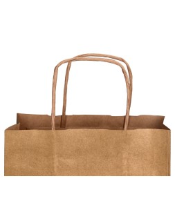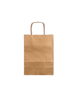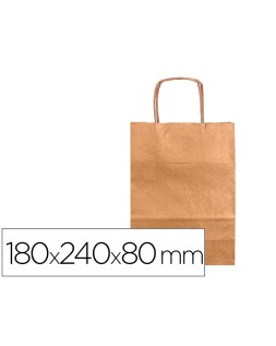 Bolsa papel q-connect kraft natural liso xs con asa retorcida 180x240x80 mm