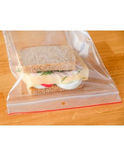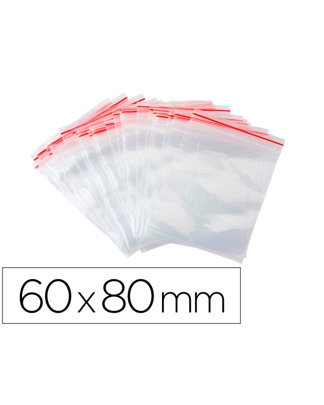 Bolsas fabricadas en plástico con sistema de autocierre por presión fáciles de volver a sellar. Color transparente con una línea roja y una perforación de 6 mm sobre el sello. Ideales para almacenar pequeños suministros de oficina o incluso alimentos. Grosor: 50 micras.