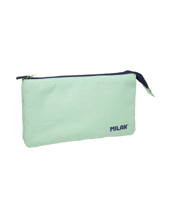 Estuche portatodo con 2 cremalleras y 5 compartimentos, para poder organizar y repartir el contenido. Serie 1918, color verde. Inspirada en los colores y diseño originales de las gomas de borrar Milan, fabricadas en Españadesde 1918. Forro interior estampado azul marino con una cuadrícula que e voca las formas de las gomas Milan. Tejido exterior 'ripstop': ligero y resistente a la rotura y rasgaduras. Utiliza una técnica especial que teje hilos gruesos de refuerzo a intervalos regulares en un patrón entrecruzado.Composición tejido: exterior y forro interior de poliéster. Medidas: 22x1 2x4 cm.