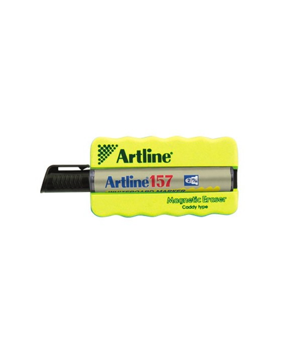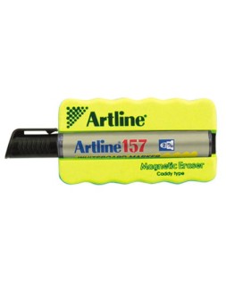 Borrador magnético pizarra blanca. Manejable y agradable al tacto debido a su material de goma. Ergonómico. Se desliza sin esfuerzos sobre la superficie y se adhiere a ella gracias a su potente imán. Con rotulador EK-157 negro incorporado. Colores surtidos. Medidas: 100 x 60 mm.