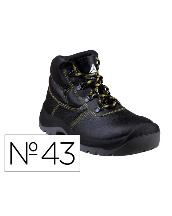 Bota de trabajo en piel crupón grabada S1P SRC. Caña de Piel crupón grabada. Forro de Poliamida mesh. Plantilla interior amovible preformada de poliéster sobre EVA. Suela de Inyectada PU bi-densidad. Color negro. Talla 43.HOMOLOGADO EN NORMA ISO 20345:2011 (S1P-FO-A-E-SRC).