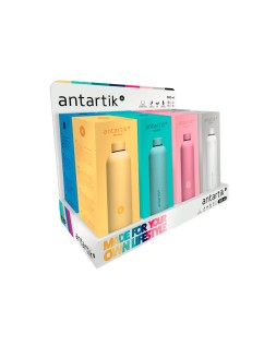 Botella isotérmica Antartik de acero inoxidable libre de BPA. Capacidad 750 ml. Mantiene la temperatura del líquido contenido, tapón de rosca hermético. Mantiene frío 24h. Calor 12 h. Sin condensación, doble capa de acero.El uso de botellas reutilizables contribuye a reducir el consumo de plást ico. Colores surtidos.