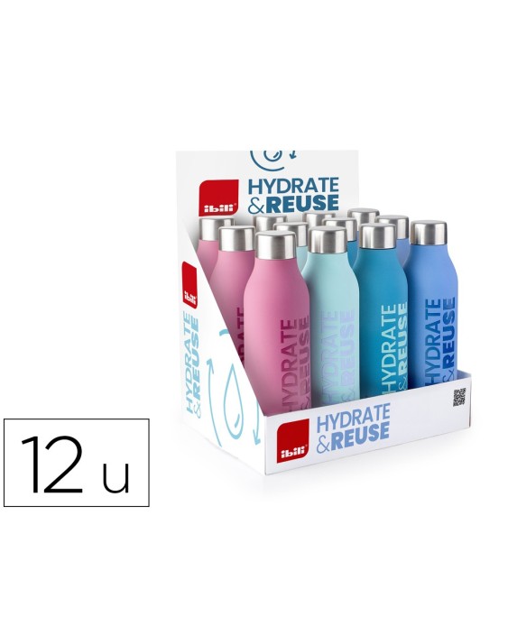 Botella portaliquidos ibili doble pared libre bpa 500 ml expositor de 12 unidades colores surtidos
