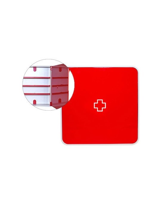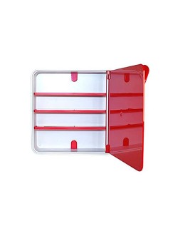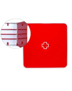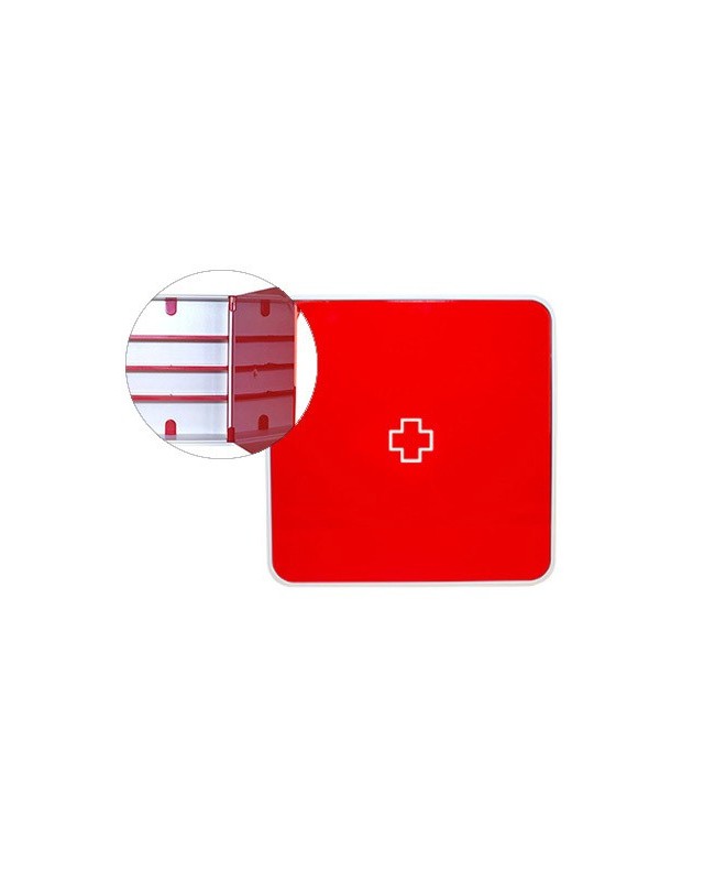 Armario fabricado en plástico ABS. Con 3 estantes interiores. Diseño minimalista y contemporáneo, perfecto para el hogar o la oficina. Mantiene las medicinas y los utensilios de primeros auxilios organizados. Entregado montado. Tornillos y tacos suministrados. No incluye ningún tipo de material de primeros auxilios. Color rojo. Medidas: 320 x 320 x 70 mm.