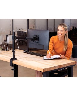 Ajustable en altura hasta 45 cm. Regulable en profundidad (desde 6,3 a 68,6 cm), permitiendo colocar la pantalla a una distancia óptima de visión. Permite inclinar la pantalla hacia arriba o hacia abajo ± 45 y un giro de pantalla de 180 . Fácil de montar con sistema de fijación de pinza, sin necesidad de utilizar herramientas. Permite ser fijado a la mesa mediante pinza (grosor de mesa entre 1 cm a 8,8 cm) o por grommet (grosor de mesa entre 1 cm a 7,5 cm). Soporta monitores de hasta 8 kg o 27 pulgadas. Medidas: 55 x 11,6 x 49 cm. Peso: 3,03 kg.