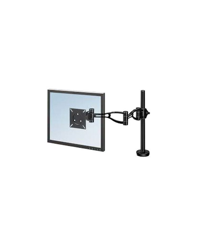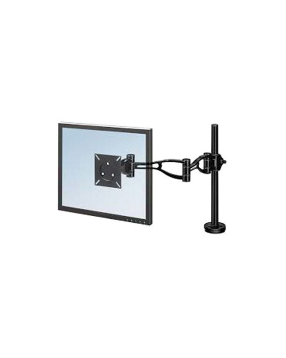 Brazo ligero que permite colocar la pantalla a la distancia correcta, evitando tensiones en cuello, ojos y brazos. Ajustable en altura desde 8,8 cm a 41,9 cm. Regulable en profundidad desde 6,3 a 68,6 cm. Permite inclinar la pantalla hacia arriba o hacia abajo ± 37º y un giro de pantalla de 360º. Válido para mesas de entre 2,54 cm a 7,6 cm de grosor. Soporta monitores de hasta 10 kg. Cumple con las especificaciones VESA. Fácil de montar con sistema de fijación de pinza, sin necesidad de utilizar herramientas. Medidas: 533 x 111 x 609 mm. Peso: 3,43 kg.