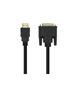 Cable DVI a HDMI con conector tipo DVI 18+1 macho en un extremo y HDMI tipo A macho en el otro. Conector HDMI de alta calidad blindado en oro de 24K. Múltiple apantallamiento formado por 128 hilos trenzados y lámina de aluminio para la máxima reducción de posibles interferencias. Fabricado con conductores de cobre (cobre OFC-Oxygen Free Copper- 99,99%) de alta calidadque garantiza la máxima calidad. Velocidades de transferencias de datos de hasta 5,1 Gb/s.