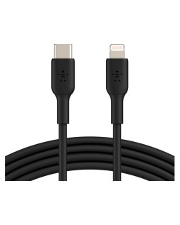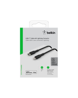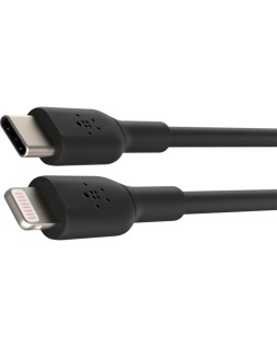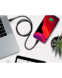 Suministra corriente por carga rápida al iPhone 8 o modelo posterior, hasta el 50 % en 30 minutos. Este cable USB-C con conector Lightning también te permite sincronizar música o fotos fácilmente con un iPhone o iPad. Además, cuenta con certificación MFi para funcionar con productos de Apple. Color negro. Cable de 1 metro.