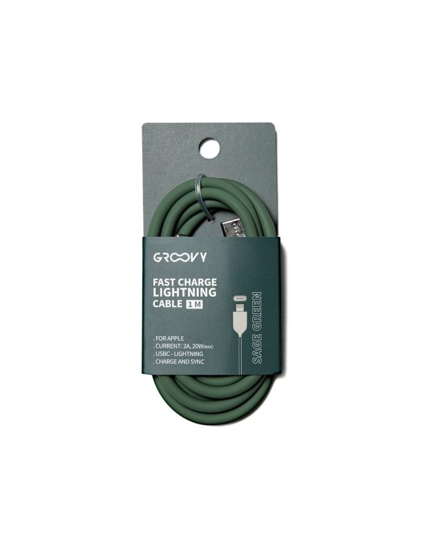 Cable groovy usb 2.0 tipo c a tipo c longitud 1 mt silicona color verde salvia