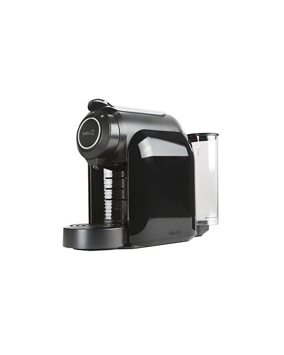 Cafetera de capsulas de café y té Delta Q. Bajo consumo. Teclas de mando: Botón on-off, extracción de expreso 35 ml, extracción de café 50 ml. Interrupción de la extracción. Botones de extracción programables. Expulsión automática del residuo de la cápsula utilizada. Contenedor de hasta 10 cápsulas usadas. Depósito de 1,1 l. Capacidad del depósito para gotas: 0,30 l. Presión: 19 bares. Potencia: 1.200 W. Medidas: 265 x 307 x 205 mm. Peso: 4 kg.