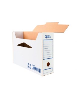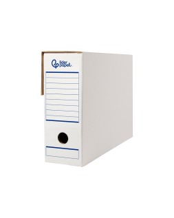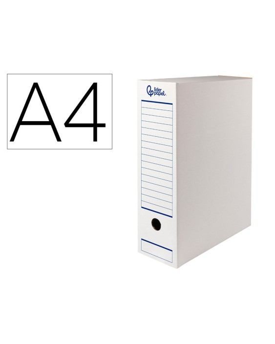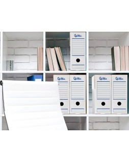 Caja de archivo definitivo para almacenar, organizar y proteger documentosy facturas tamaño Din A4. Para mayor comodidad, la caja posee un sistema de montaje automático que permite que la caja quede montada con tan solo desplegarla. Fabricada con cartón ondulado 100% reciclado y reciclable de 325g/m². Esta caja de archivo definitivo en color blanco tiene un lomo de 100 mm y sus medidas son 360x100x255 mm. Con 2 zonas amplías de etiquetajeque permiten almacenarlas tanto en posición vertical como horizontal. Est a caja de archivo definitivo te permitirá conservar tus documentos de forma ordenada al mismo tiempo que ahorrarás espacio, siendo así mucho más eficiente su almacenamiento. Compatible con los cajones contendores Liderpapel 171283, 171284, 171289 y 171290.