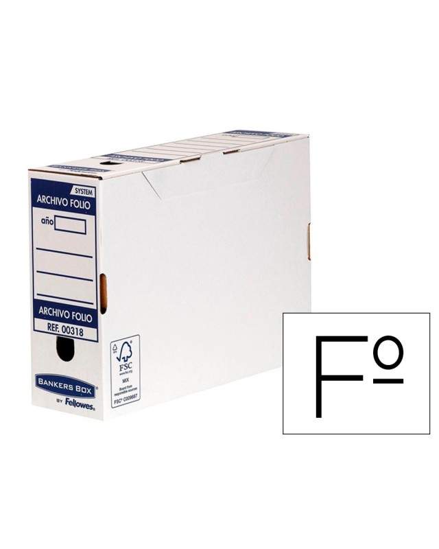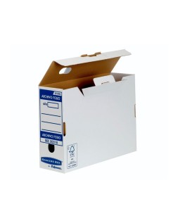 Caja archivo definitivo fellowes folio carton reciclado 100% lomo 100 mm montaje automatico color azul