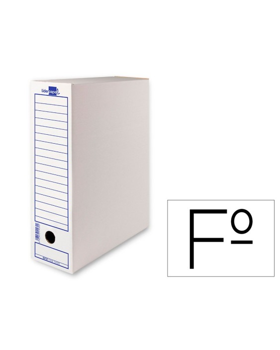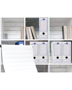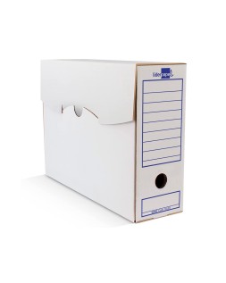 Caja de archivo definitivo ultrarresistente para almacenar, organizar y proteger documentos y facturas tamaño folio. Con sistema de montaje manual muy simple. Fabricada con cartón ondulado 100% reciclado y reciclable de 400g/m² para una mayor resistencia. Esta caja de archivo definitivo en color blanco tiene un lomo de 100 mm y sus medidas son 365x100x251 mm. Con ollao lateral y frontal acompañado de 2 zonas amplías de etiquetaje que permiten almacenarlas tanto en posición vertical como horizontal. Esta caja de archivo definitivo te permitirá conservar tus documentos de forma ordenada al mismo tiempo que ahorrarás espacio, siendo así mucho más eficiente su almacenamiento. Compatible con los cajones contendores Liderpapel 171283, 171284, 171289 y 171290.