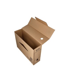 Caja de archivo definitivo para almacenar, organizar y proteger documentosy facturas tamaño folio. Con sistema de montaje manual muy simple. La ca ja tiene un código QR que redirigirá a un video con las instrucciones de montaje. Fabricadas con cartón ondulado 100% reciclado y reciclable de 325g/m². Esta caja de archivo definitivo en color kraft tiene un lomo de 100 mm y sus medidas son 365x100x251 mm. Con ollao lateral y frontal acompañado de 2 zonas amplías de etiquetaje que permiten almacenarlas tanto en posición vertical como horizontal. Esta caja de archivo definitivo te permitirá conservar tus documentos de forma ordenada al mismo tiempo que ahorrarás espacio, siendo así mucho más eficiente su almacenamiento. Compatible con los cajones contendores Liderpapel 171283, 17