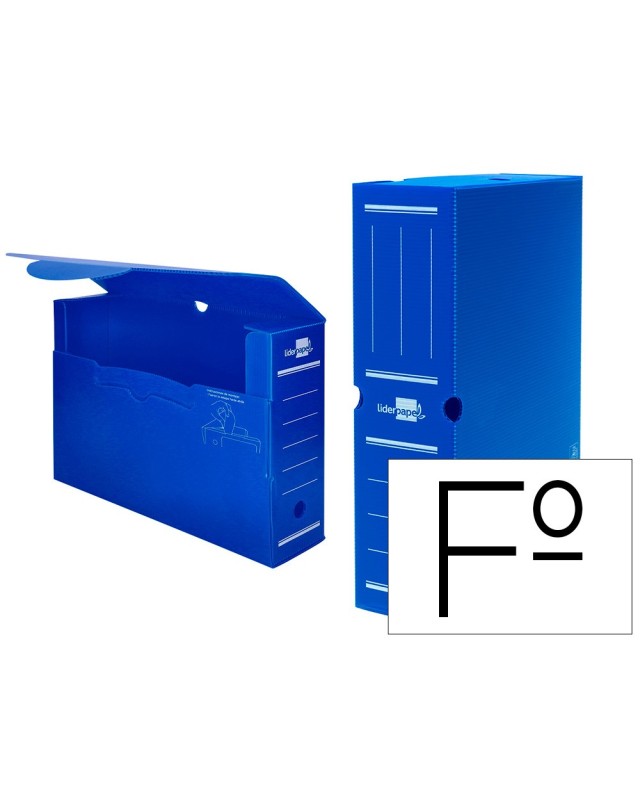 Caja archivo definitivo plastico liderpapel lomo 100 mm azul 360x100x260 mm